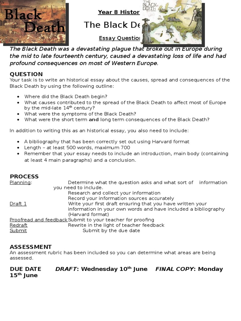 The plague was the most devastating pandemic in human history, killing around million people mostly throughout Europe, leaving most people back then wondering how they and others got sick and died. changed forever. The Black Death, which is another name for the Bubonic Plague, laid havoc on the the black death essay world. Its engine is far-reaching. The plague did not care if the people were rich, poor, white, black, the black death essay, Muslim or Catholic, it would kill whomever it could.